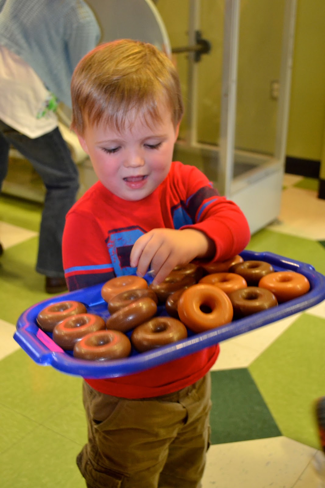Sunday was rainy all day. There was absolutely NO way we were staying cooped up inside the house all day. . .or at least no way I was staying cooped up with all of those kiddos in the house all day! So, we headed about 30 minutes to another town where they have a Children's Museum. That place was so cool. . .and perfect for a rainy day! They had room upon room of fun things to do: they had a Krispy Kreme factory, a Food Lion grocery store, a beanstalk to climb, a library, a kitchen, and tons of others too. Tanner had fallen asleep on the ride there and slept for like 2 hours (of course on a 30 minute drive), so I stayed in the car with her until she woke up. Once we headed in, TJ never left the Krispy Kreme factory! So I only got one picture of him. . .well, and one of him climbing the beanstalk on the way out!